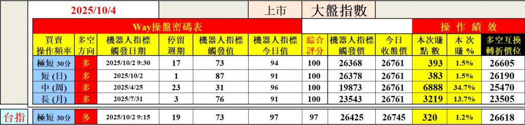 Way 全方位股票+期貨機器人 1. XQ-股期自動交易 2. APP-AI多空判斷+轉折點預測 3. APP-三大法人多空籌碼導航 4. XQ-AI-多空評分選股 5. 股票+期貨1-5分K,盤中實測 6. 績效驗證,周周回測績效並統計分析 7. Way社群即時分享重要信息、多空轉折 8. Way-Fb粉絲團,Way-YouTube [ 歡迎您洽詢! Line ID: win-way ]