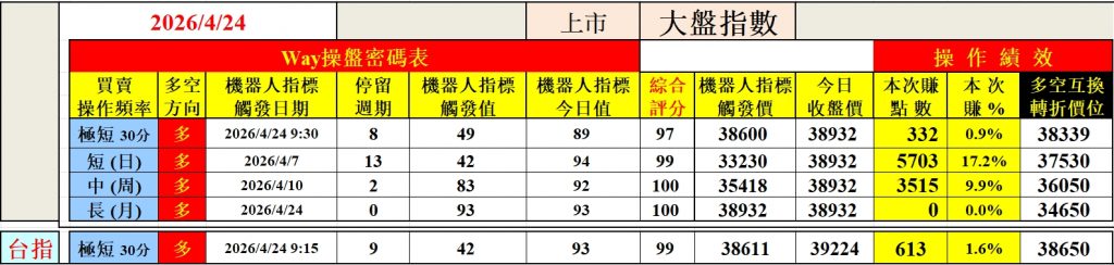 Way 全方位股票+期貨機器人 1. XQ-股期自動交易 2. APP-AI多空判斷+轉折點預測 3. APP-三大法人多空籌碼導航 4. XQ-AI-多空評分選股 5. 股票+期貨1-5分K,盤中實測 6. 績效驗證,周周回測績效並統計分析 7. Way社群即時分享重要信息、多空轉折 8. Way-Fb粉絲團,Way-YouTube [ 歡迎您洽詢! Line ID: win-way ]